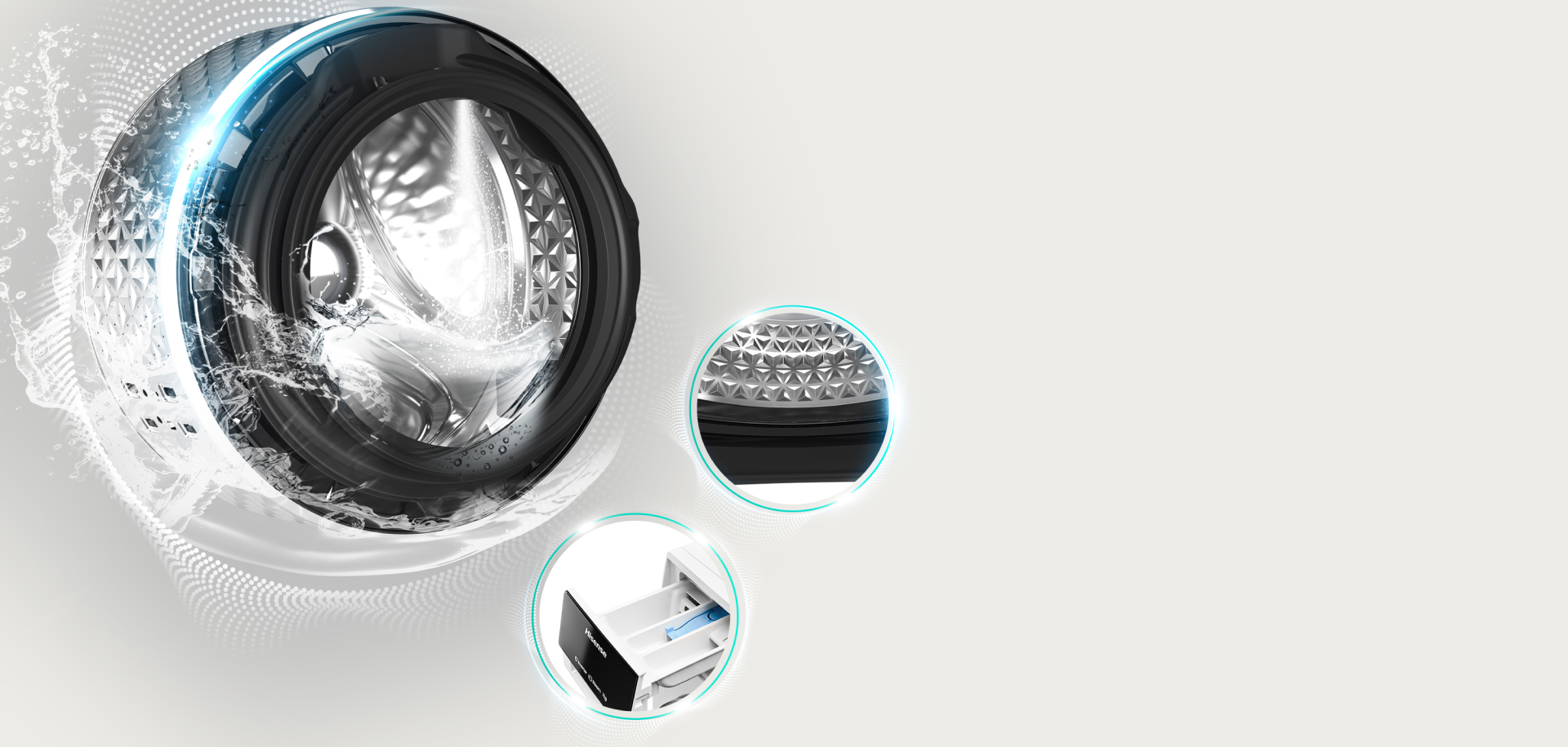 Мощный бесщеточный мотор с электроникой нового поколения обеспечивает безупречный результат стирки, тихую и надежную работу стиральной машины, а также снижает расход электроэнергии.