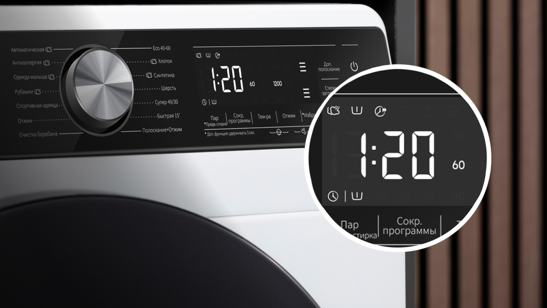 Функция отсрочки окончания стирки позволяет запрограммировать завершение программы на удобное для вас время. Это также позволяет пользоваться более низкими тарифами на электроэнергию.
