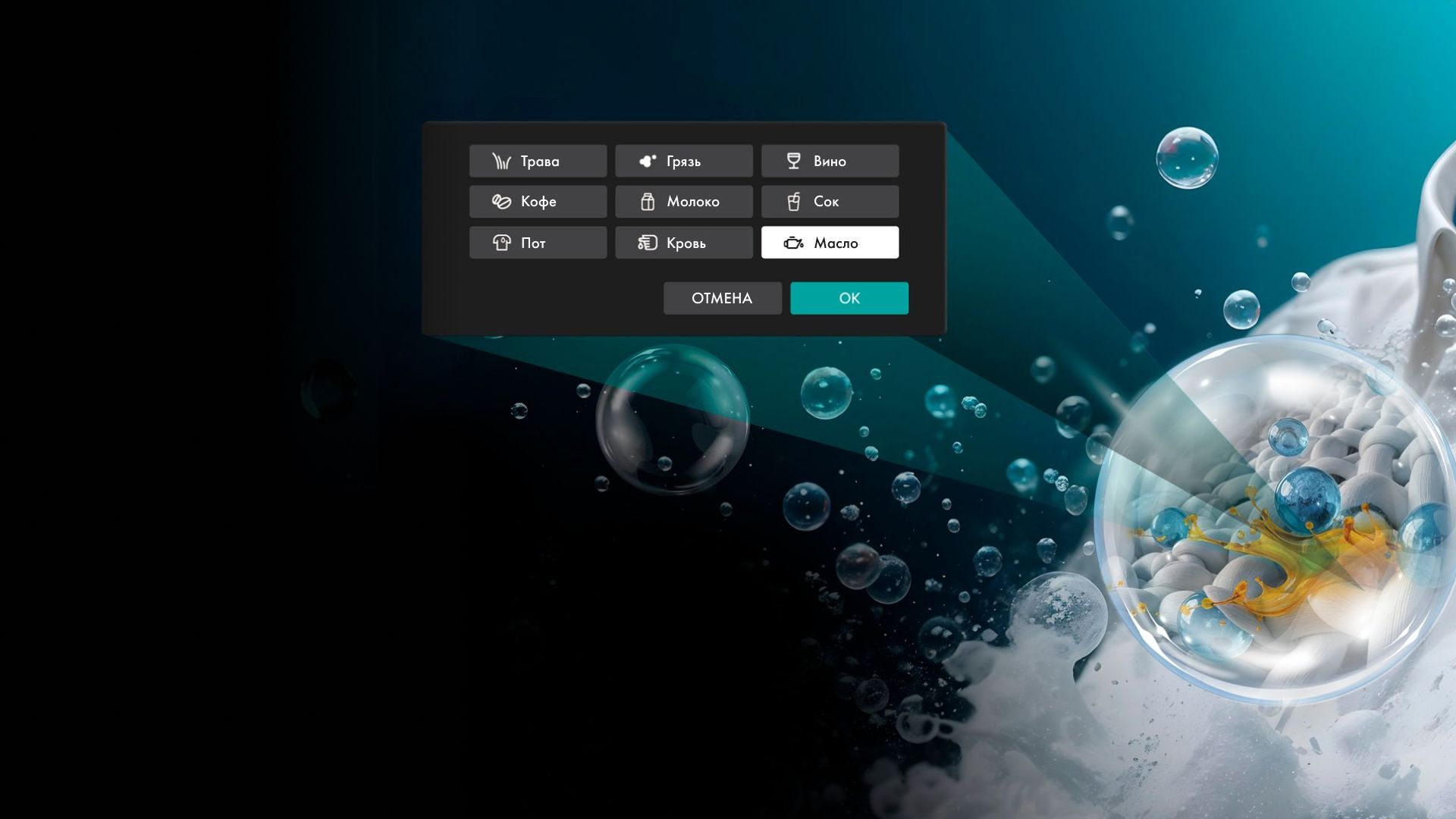Функция «Удаление пятен» эффективно удаляет 9 самых распространенных и трудных видов загрязнений. Машина автоматически подбирает температуру, скорость вращения барабана и продолжительность цикла в соответствии с типом пятна. Функция гарантирует свежесть и чистоту одежды, эффективно удаляя ежедневные пятна и бережно относясь к ткани.