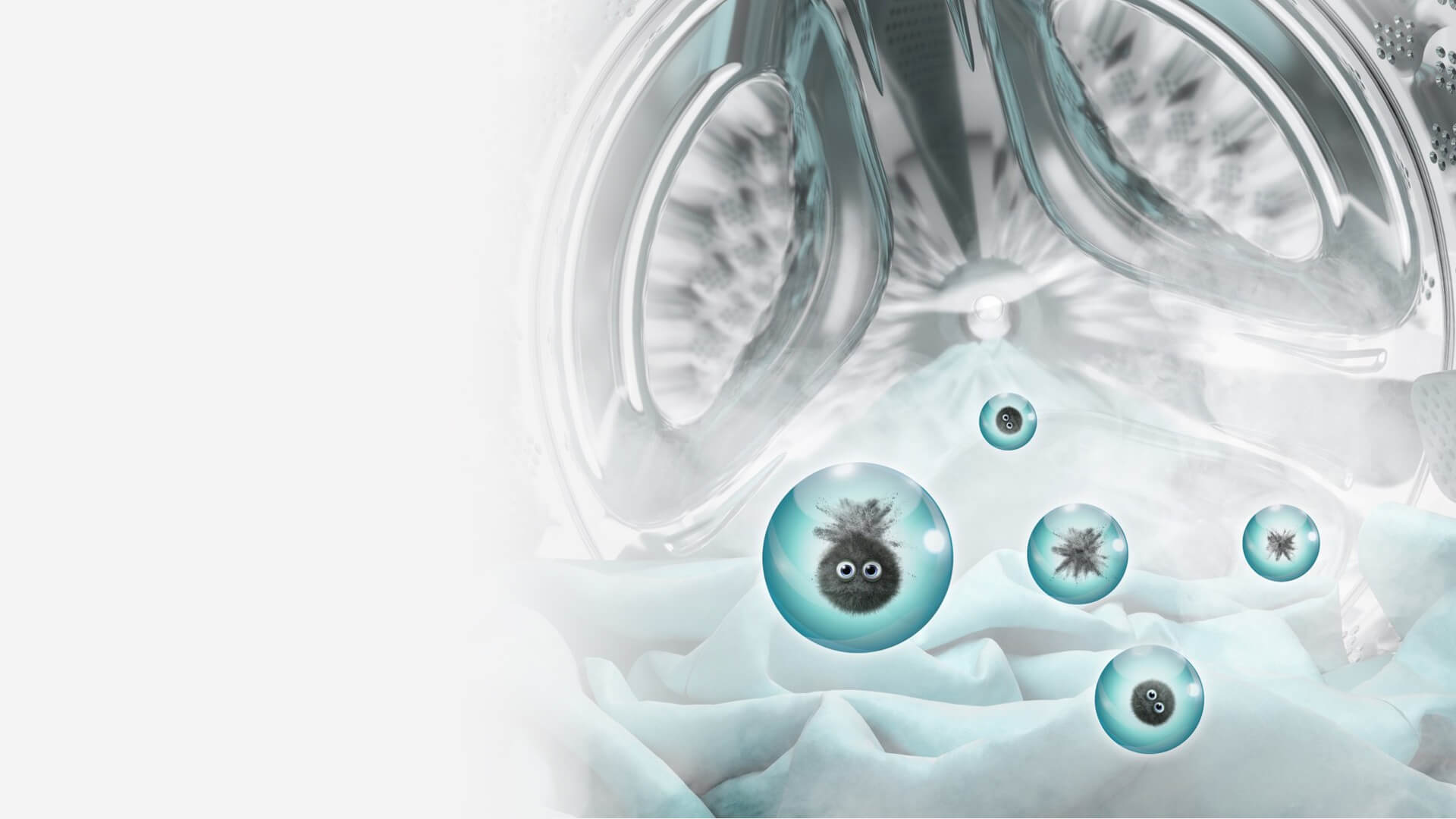 Дополнительная обработка паром, в качестве предварительной программы стирки, удаляет с одежды подавляющее большинство микробов и бактерий.