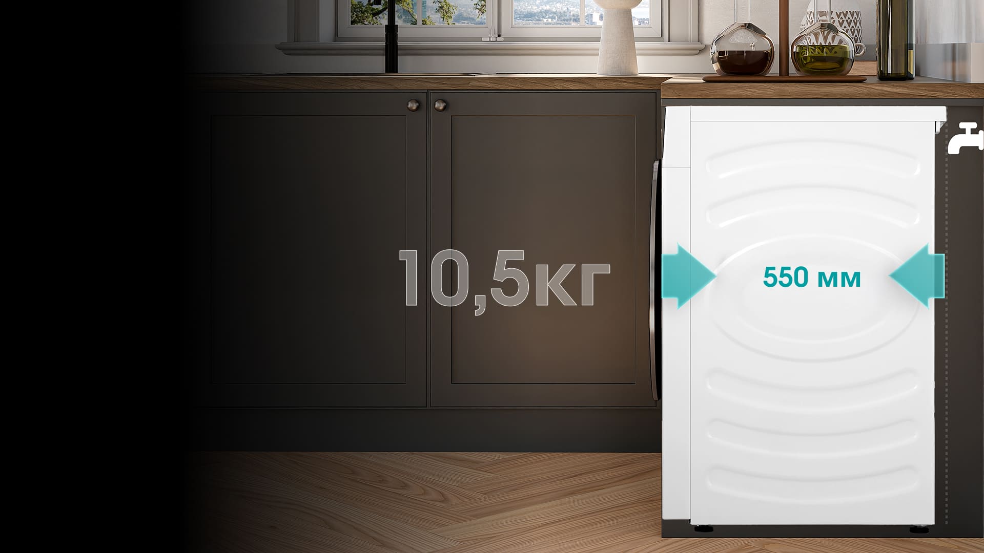 в 10,5 кг. Всего 55 см глубины и 59,5 см ширины