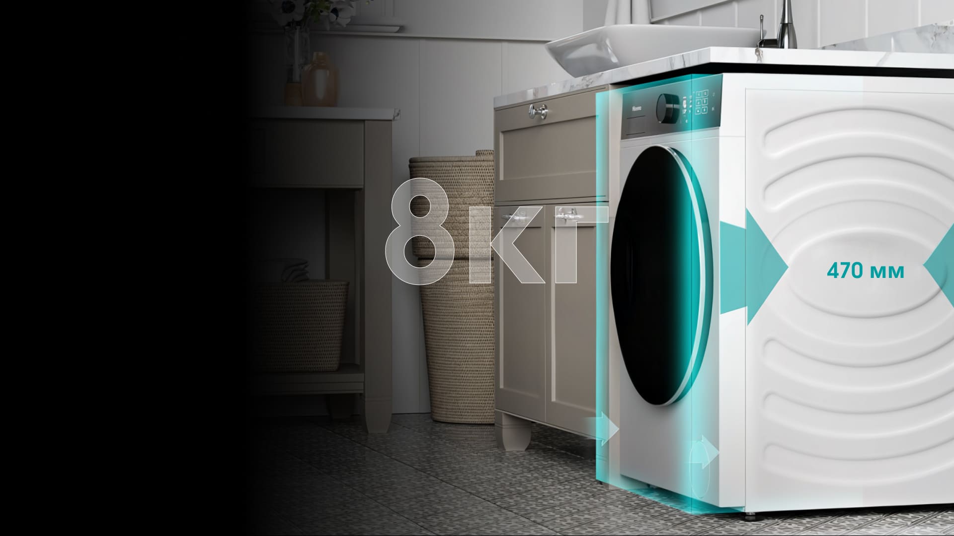 — всего 47 см глубины и загрузка до 8 кг белья.