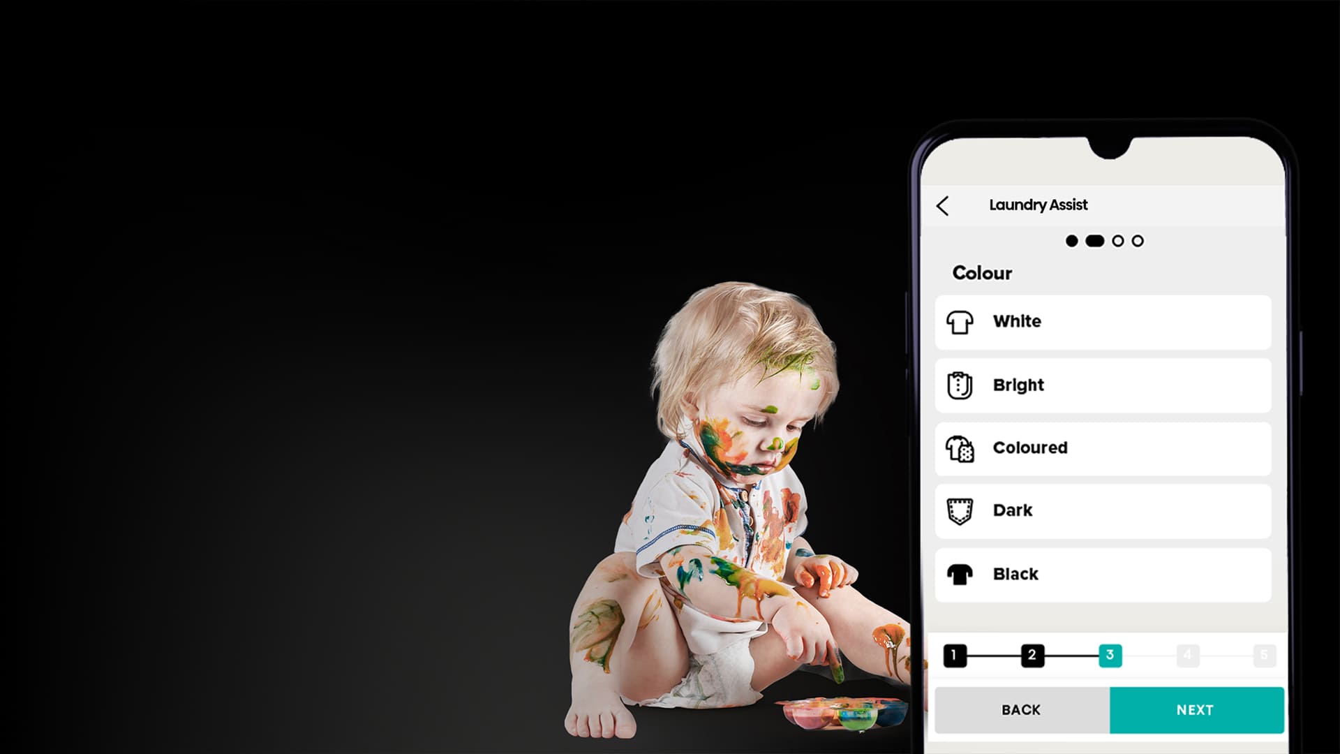 Просто выберите тип ткани, цвет, степень загрязнения и вид пятен в приложении ConnectLife, а стиральная машина постирает вашу одежду с идеальным сочетанием нужной температуры, времени и воды.